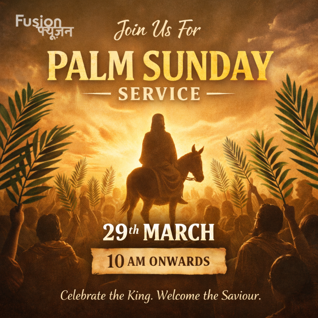 Join us this Palm Sunday as we celebrate the triumphant entry of our King. Come worship with us, wave your palms, and prepare your hearts for the journey to the Cross. Let us gather as one church family in praise and reverence. Venue : Fusion Hall Time : 10 AM