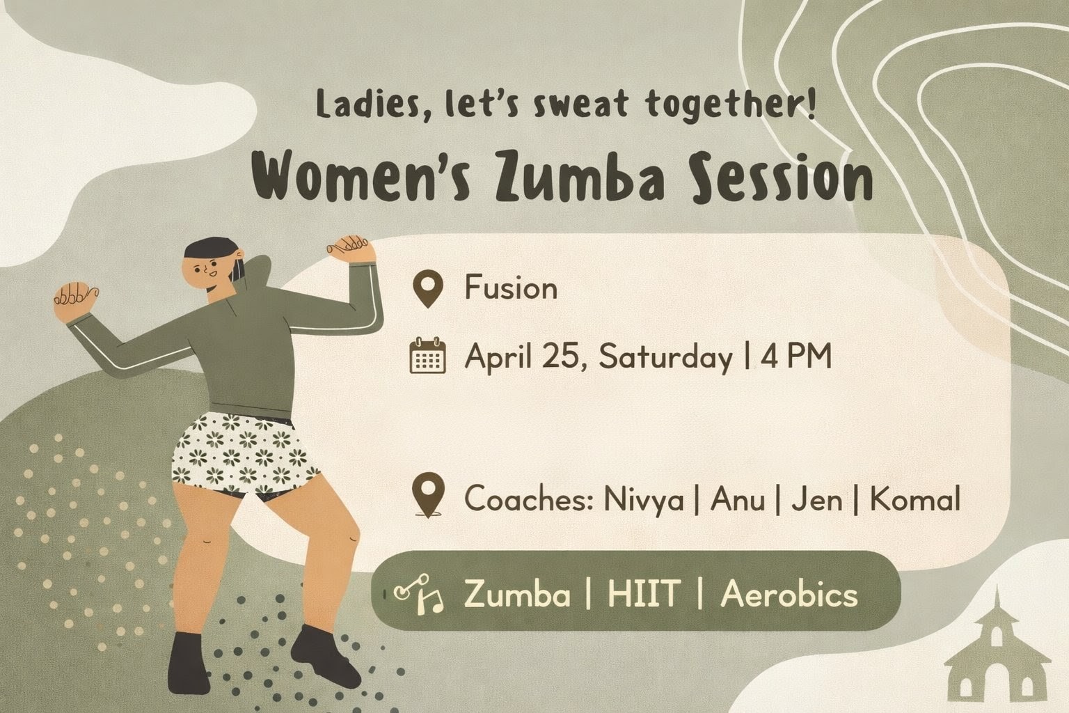 Fusion is hosting a Women’s Zumba Session on Saturday, April 25 at 4 PM, inviting ladies to come together for an energetic and fun workout experience. Led by coaches Nivya, Anu, Jen, and Komal, the session will include Zumba, HIIT, and aerobics—creating the perfect opportunity to stay active, refresh the mind, and enjoy fitness in a lively group setting.