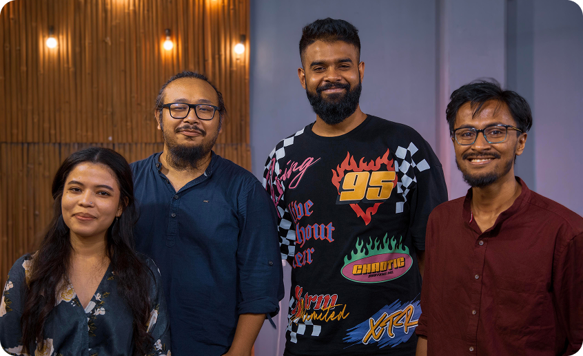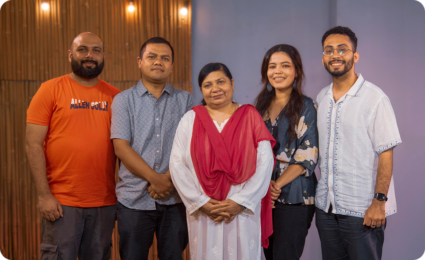 (L–R): Sumit, Krutika, Deibormitre, Pretty